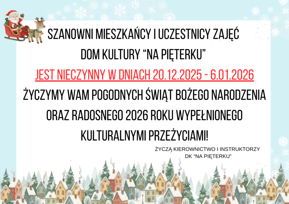 26 listopada 2025To już tradycja, że w Domu Kultury „Na Pięterku” i „Jędruś” w listopadzie na scenę wychodzą wszystkie myszki i wyśpiewują swoje serce! W dniach 21-22.11.2025 odbył się już 27 Przegląd Piosenki z Myszką. W piątek w Domu Kultury „Na Pięterku” [...]
