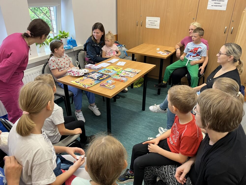 Na miejscu w Domu Kultury też było super! Zorganizowaliśmy wiele warsztatów, w których dzieci chętnie brały udział! Zrobiliśmy pyszne gofry i lemoniadę, wykonaliśmy ekologiczne zakładki do książek, glutki świecące w ciemności, gry planszowe! Był też oczywiście czas na swobodną zabawę i nawiązywanie przyjacielskich relacji!