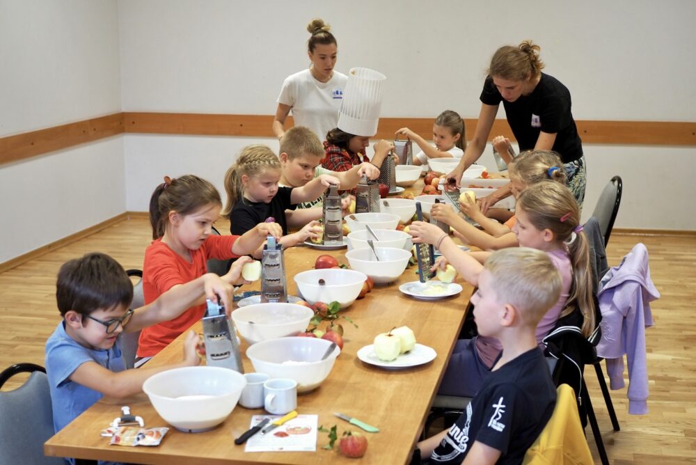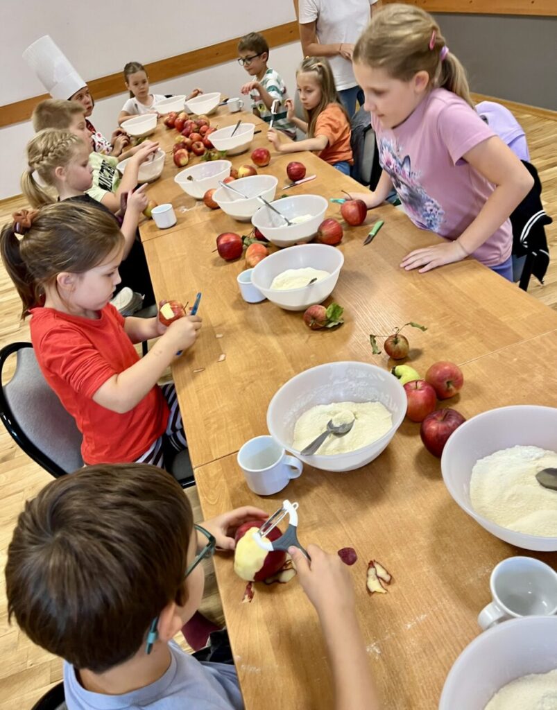 Za nami pierwsze w tym sezonie warsztaty kulinarne dla dzieci, podczas których kuchnia wypełniła się zapachem jabłek, czekolady i domowego ciasta. Tym razem mali uczestnicy przygotowywali, jabłkowe popsy w czekoladzie, a także szarlotkę i kompot jabłkowy – prawdziwe jesienne klasyki!