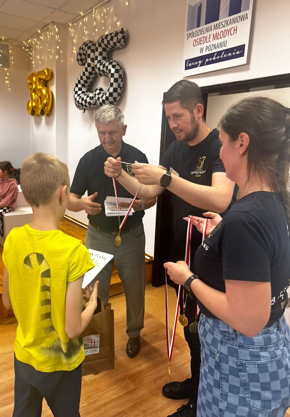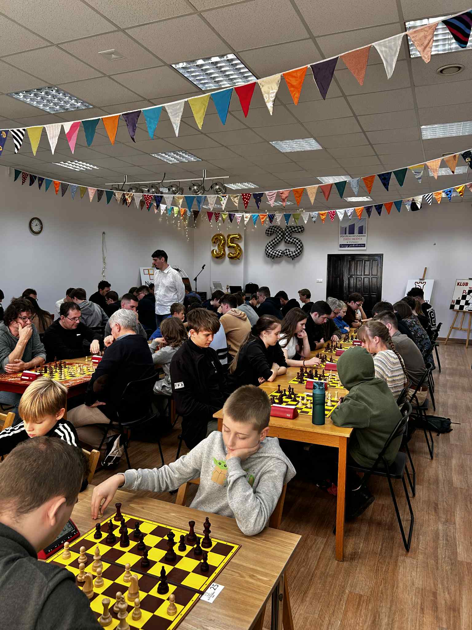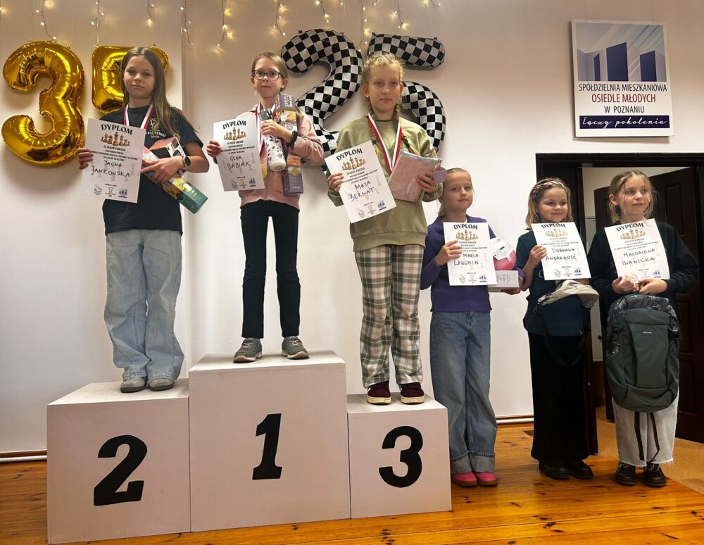 W dniach 18-19.10.2025 odbył się Festiwal Szachowy z okazji 25-lecia klubu szachowego UMKS „Na Pięterku” Poznań i 35-lecia działalności DK „Na Pięterku. Pierwszego dnia obchodów jubileuszy odbył się turniej dla juniorów z rocznika 2013 i młodszych do rankingu 1600. Wystartowało ich aż 56. Po siedmiu zaciętych rundach wyłoniono zwycięzców. Najlepszym chłopcem okazał się Stanisław Kukla z KSz LECH-WSUS Poznań, a w kategorii damskiej najwyżej na podium stanęła reprezentantka UMKS „Na Pięterku Poznań” Lena Babiak. Wręczono nagrody główne oddzielnie w kategorii dziewcząt i chłopców (nagrodzono po pierwszych 6 miejsc). Wśród uczestników rozlosowano także 10 dodatkowych jubileuszowych niespodzianek, a każdy zawodnik wyszedł z pamiątkowym dyplomem i medalem na szyi.