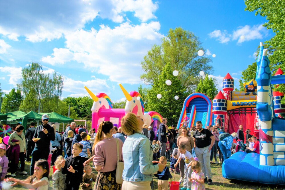 - Dmuchane atrakcje i strefa malucha – bezpieczna przestrzeń zabawy dla najmłodszych
