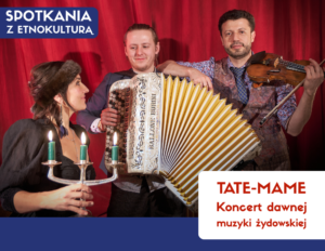 W ramach kolejnej edycji cyklu "Spotkania z Etnokulturą" zapraszamy na koncert pn. „Tate-Mame”, podczas którego będzie można usłyszeć najpiękniejsze utwory muzyki żydowskiej. Wystąpią: Karolina Trybała - śpiew, gitara, instrumenty perkusyjne Mateusz Dudek - akordeon Aleksander Bersutsky - skrzypce Wstęp bezpłatny. Darmowe wejściówki do odbioru w Klubie "Cybinka". Istnieje również możliwość rezerwacji wejściówek dowolną drogą kontaktu z biurem Klubu "Cybinka" (telefon, mail, messenger). Organizatorem koncertu jest Ratajskie Centrum Kultury. Sfinansowano ze środków budżetowych Miasta Poznania. Kurator projektu "Spotkania z Etnokulturą": Kamil…