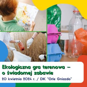 Zapraszamy do udziału w ekologicznej, rodzinnej grze terenowej, której tematem przewodnim będzie ochrona środowiska, segregacja odpadów, zdrowe odżywianie itd. Na uczestników będą czekały różne zadania, quizy i aktywności do wykonania – wszystko w tematyce ekologicznej. Gwarantujemy świetną zabawę, masę ciekawostek i wyjątkowo spędzony czas. Każda z drużyn przejdzie wytyczony szlak, na którym będą czekały zadania do wykonania. I nieważny będzie czas ich wykonania, czy rywalizacja między drużynami, istotna będzie dobra zabawa i poszerzenie wiedzy ekologicznej. Dowiemy się jak nasze codzienne…