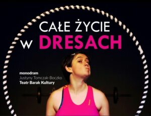 Spektakl „Całe życie w dresach” to próba opowiedzenia o doświadczeniu bycia matką Jeremiego. Justyna Tomczak-Boczko, opiekę nad synem traktuje jako sztukę życia, w której poczucie humoru jest niezbędne. Bo jej życie nie jest ani tak smutne, ani tak przerażające, jak by się mogło wydawać. Być może dlatego, czasem słyszy od znajomych: „Justyna, ty w ogóle nie wyglądasz na matkę niepełnosprawnego dziecka”. Podczas spektaklu, grając samą siebie, opowiada o swoim życiu z dużym dystansem i zaskakującą dawką czarnego humoru. Wyróżnienia: Spektakl…