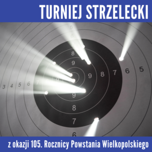 TURNIEJ STRZELECKI Z OKAZJI 105. ROCZNICY POWSTANIA WIELKOPOLSKIEGO Turniej odbędzie się na Strzelnicy Pneumatycznej (os. Powstań Narodowych 38). Obowiązują zapisy telefoniczne pod nr tel.: 601 703 971 lub osobiste w godzinach otwarcia Strzelnicy do dnia 8 lutego.