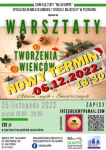 ➡ ‼ ZMIANA TERMINU NA 06.12.! 27 listopada rozpocznie się 𝘼𝙙𝙬𝙚𝙣𝙩, czyli czas, który bezpośrednio poprzedza Boże Narodzenie. Mamy więc idealnie umiejscowioną w czasie propozycję nie do odrzucenia 😉 Warsztaty tworzenia wieńców! które poprowadzi świetnie znana Na Skarpie Inicjatywa Poznaj Ludzi. Klikajcie szybciusieńko, bo liczba miejsc jest ograniczona! Szczegóły w wydarzeniu na Facebooku Zapisy przez formularz Oczekiwanie na Boże Narodzenie przy takim własnoręcznym dziele będzie wyjątkowe! Zapraszamy! Polecamy! Zarejestruj się